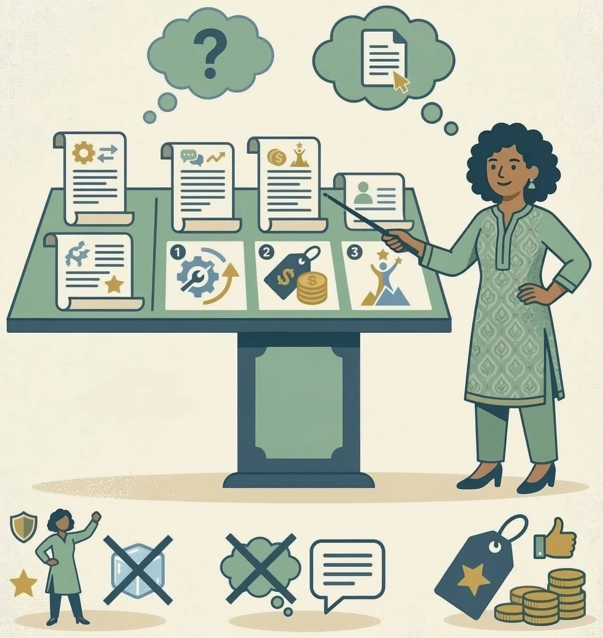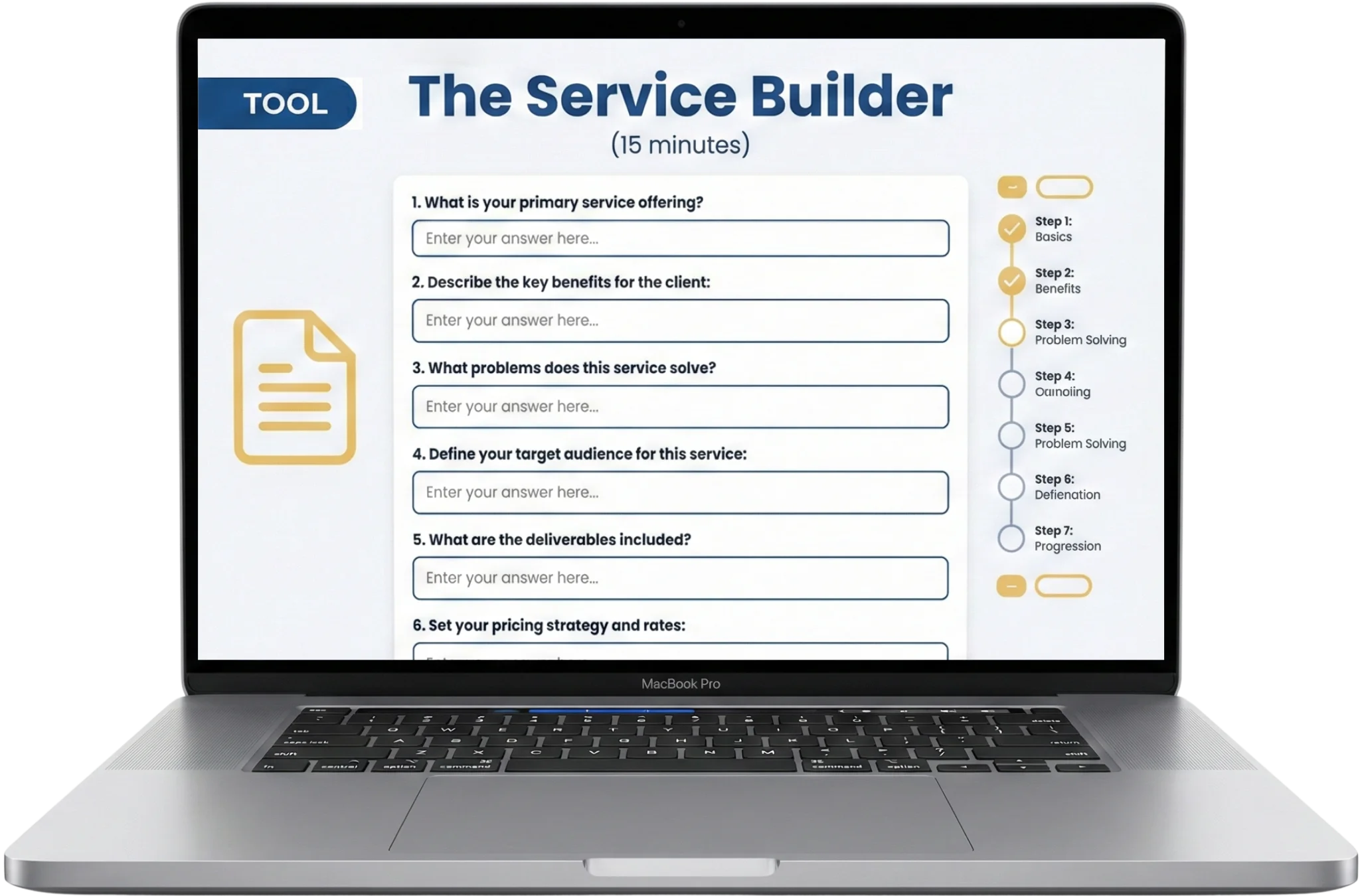 You'll follow a step-by-step process that takes you from "I don't even know what I'd offer" to having a clear private service, a strong price, and a list of real people to contact — in under 60 minutes.