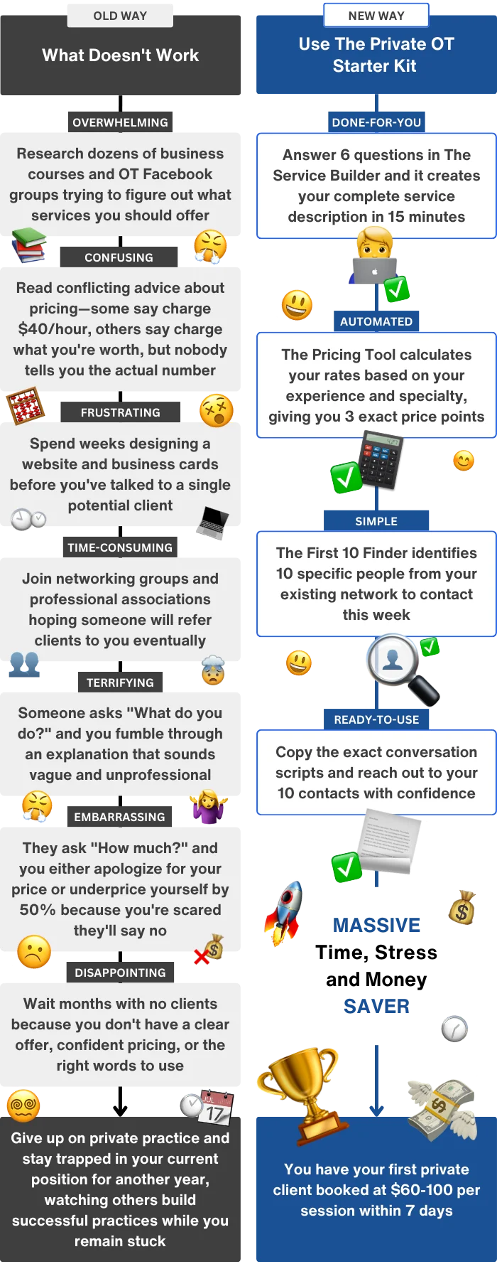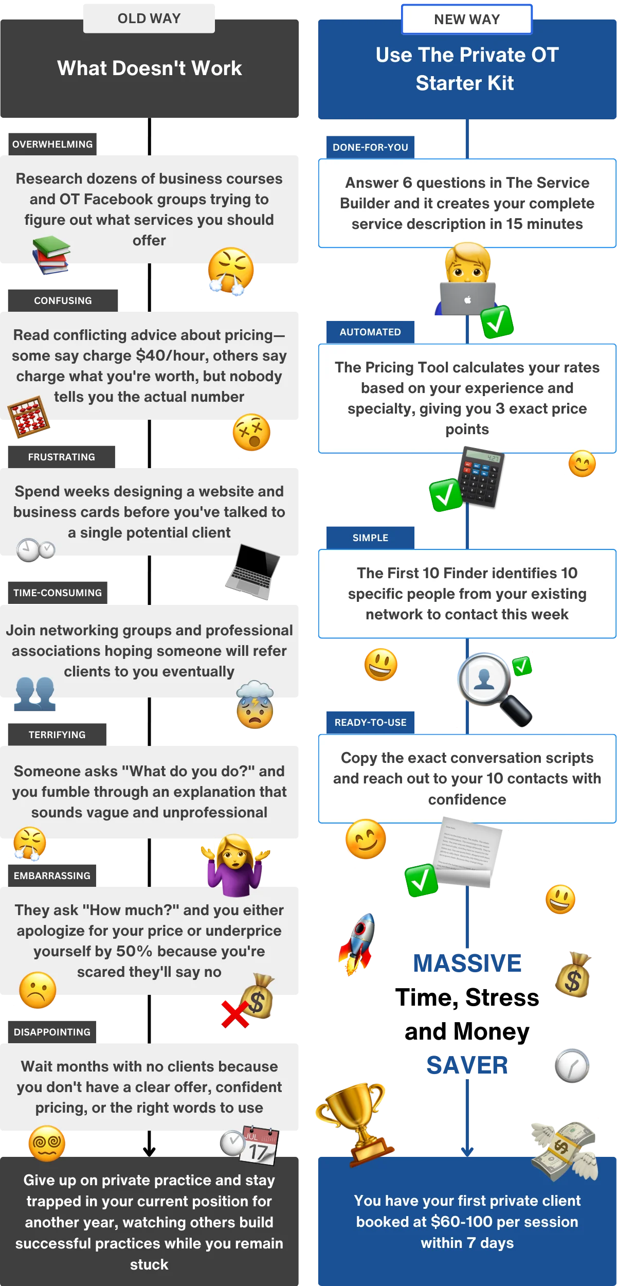 ✅ The Private OT Starter Kit — including the Service Builder, Pricing Calculator, First 10 Finder, and Conversation Scripts