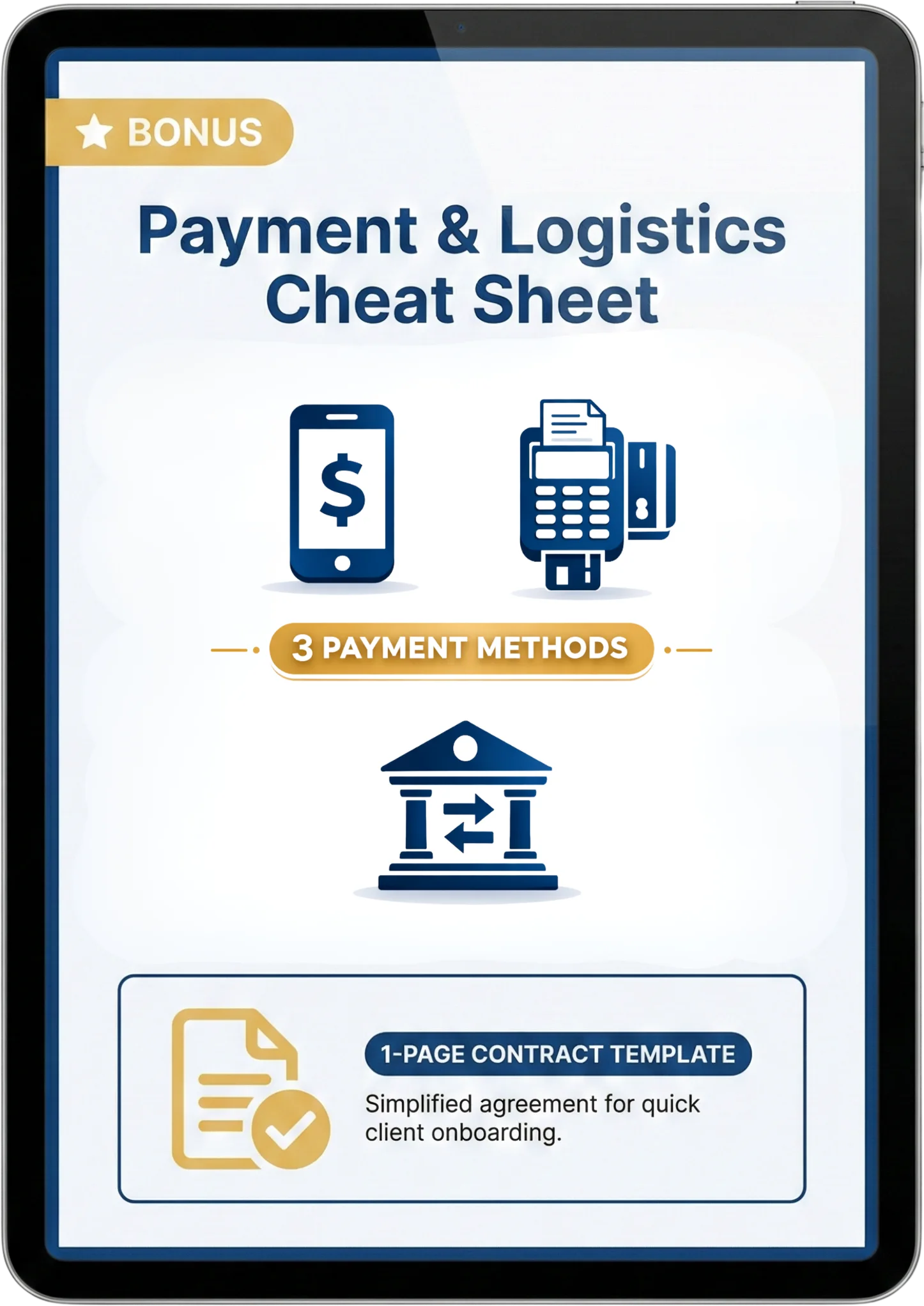 ✅ Bonus 3: The Payment & Logistics Cheat Sheet — payment methods, scripts, and a simple contract template