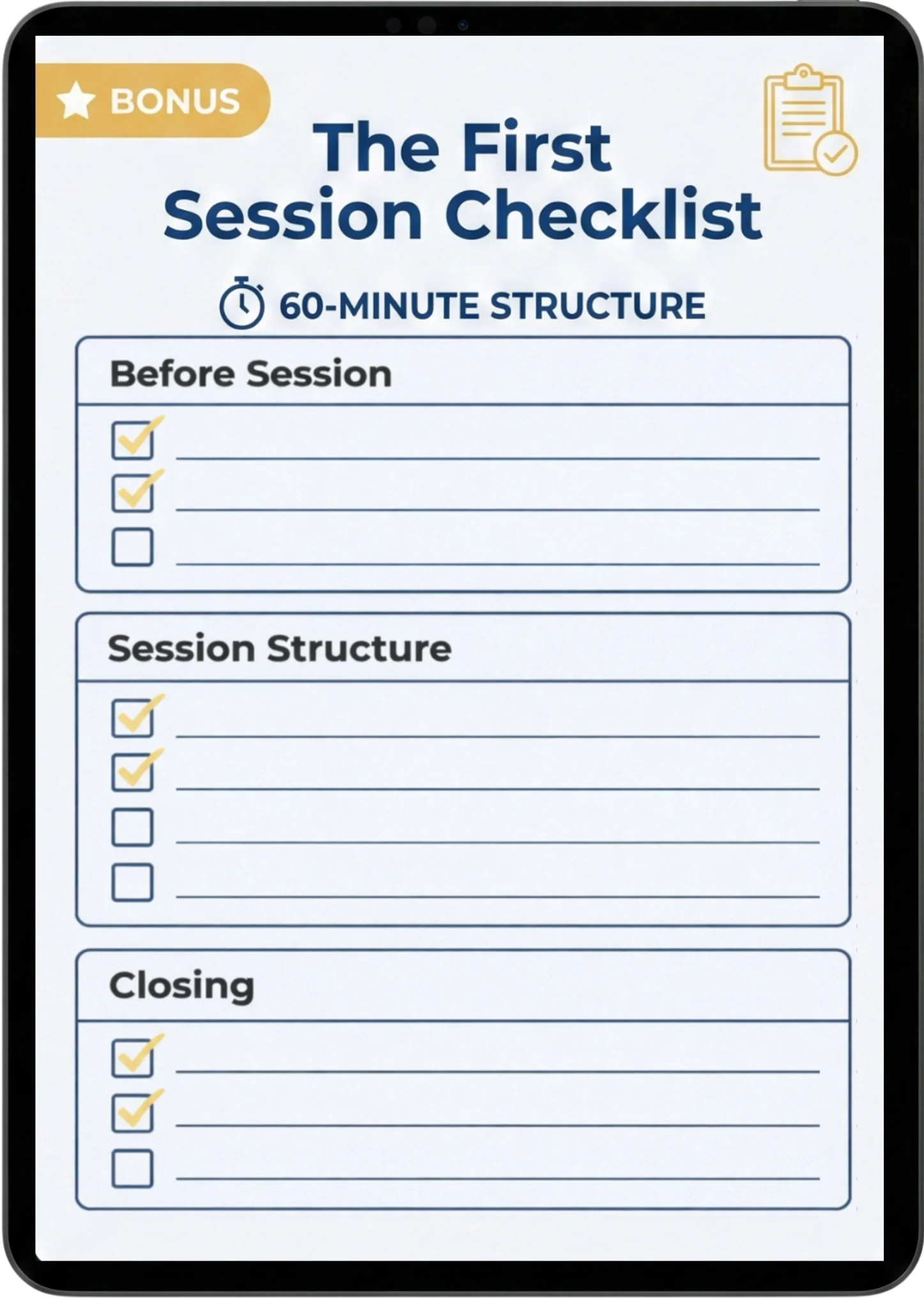 ✅ Bonus 1: The First Session Checklist — so you know exactly how to run your first 60-minute private session