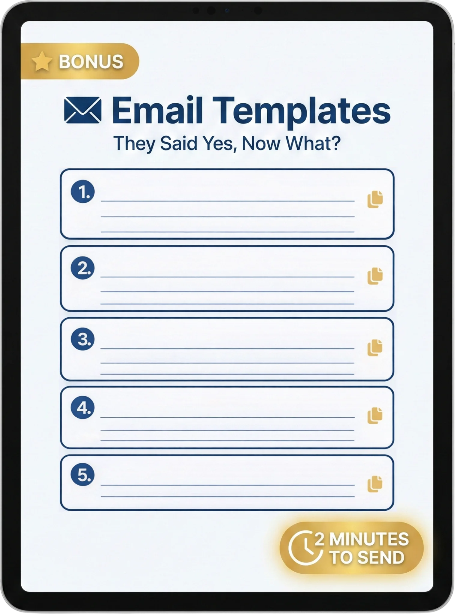 ✅ Bonus 2: The "They Said Yes, Now What?" Email Templates — 5 ready-to-use emails for next steps