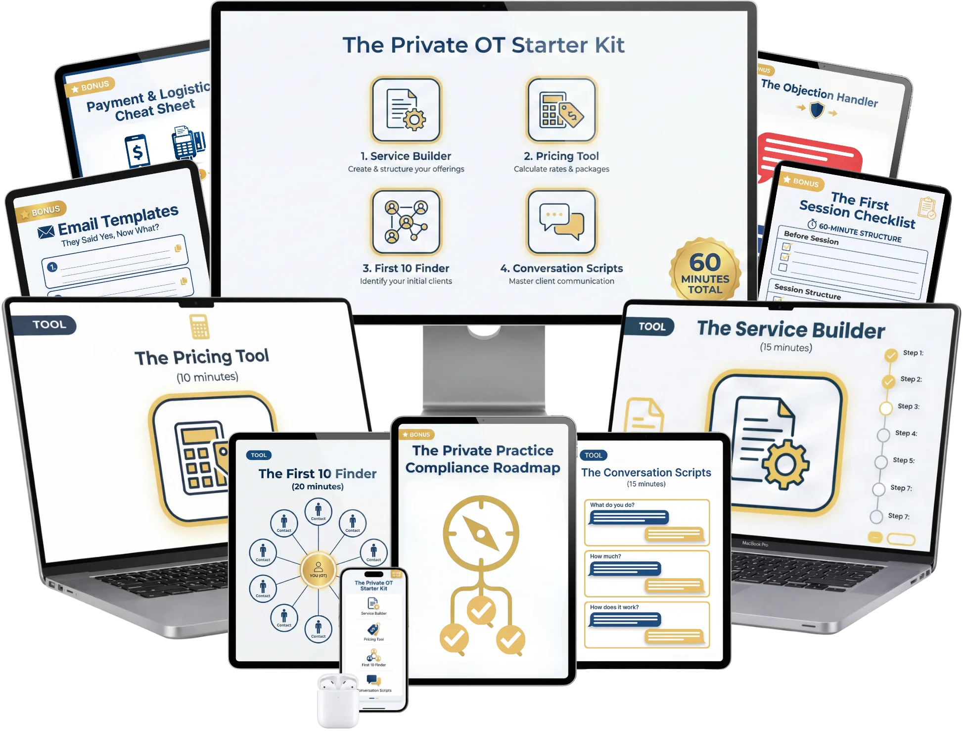 ✅ The Private OT Starter Kit — The core system that helps you define your private service, set your premium price, build your program, and find your first clients using simple step-by-step tools. Value: $27