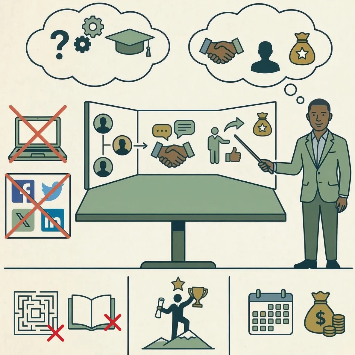 My way starts with the only part that actually makes money: your offer, your price, your first contacts, and your first conversations.