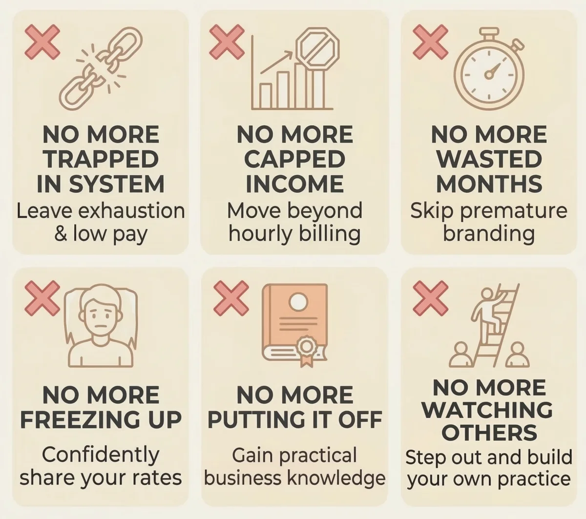 ❌ No more capped income from hourly billing that doesn't reflect your years of expertise