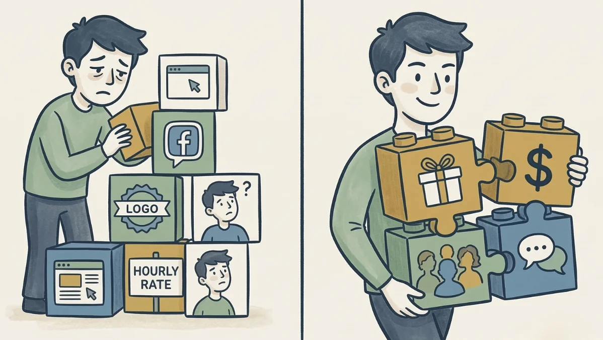 The old way says build a website, post on social media, get a logo, set an hourly rate, and hope clients find you.